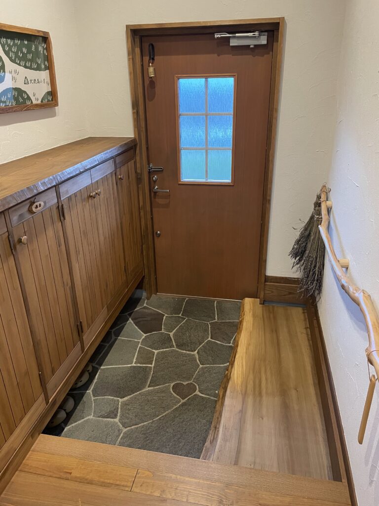 今後は靴を脱いで式台に上がっていただき、手すりにつかまりつつ靴を持っていただけるとスムーズかと思います!