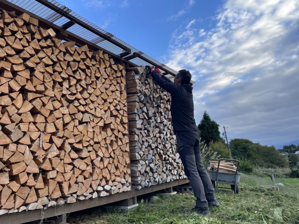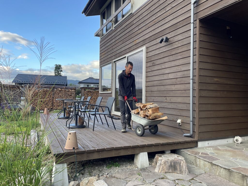 薪ストーブの中にも薪を入れ、いつでも火入れOK!