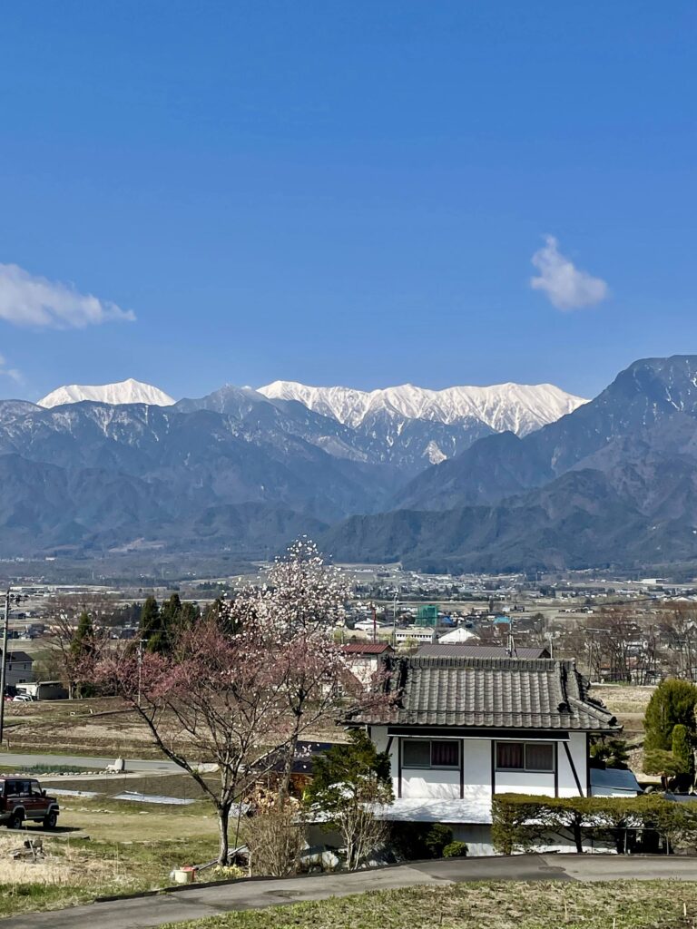 先日の雨。山では雪が降ったようで、山肌が見え始めていた北アルプスがまた真っ白♡