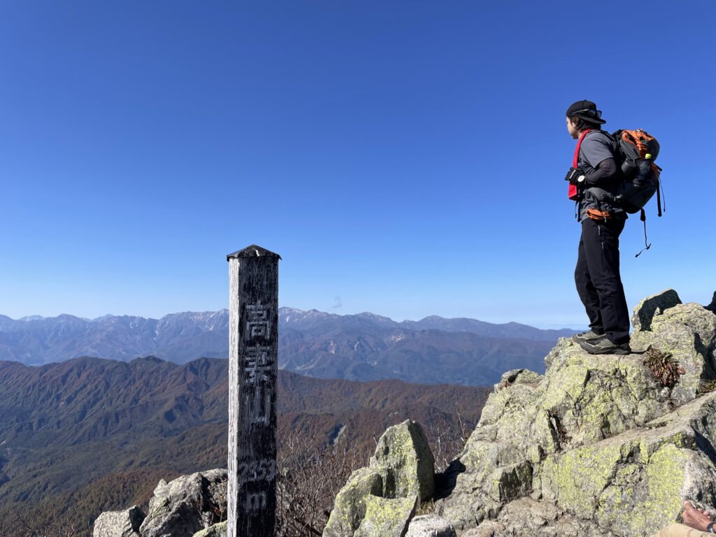 山頂から見る北アルプスの山々、遠くは槍ヶ岳までバッチリ!