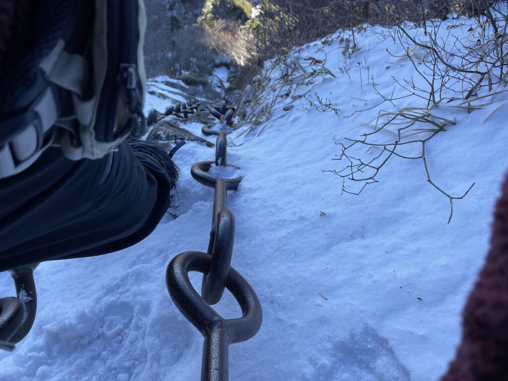 オーバーグローブを手袋に重ねて装着し、そのおかげで冷たい鎖に負けず、登りきることができました。