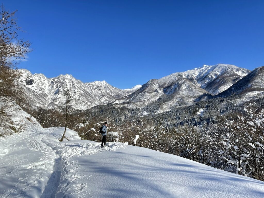 トレースがあったので「助かる〜」なんて歩いてたら、すぐに先行者(70代・地元の男性)に追いついてしまった!